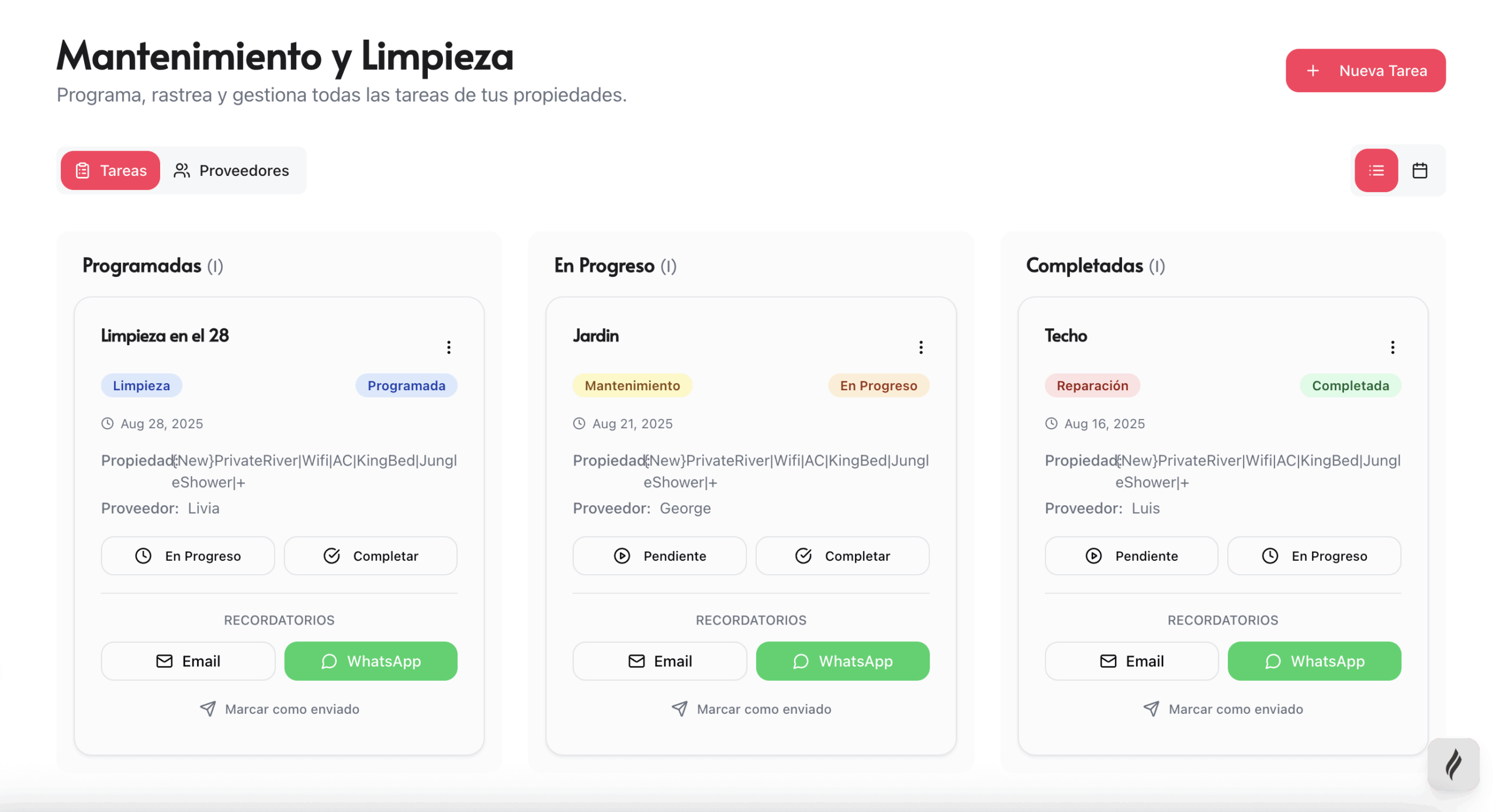 Puedes asignar tareas de limpieza, mantenimiento y reposición directamente a los miembros de tu equipo. Paradiso Stay monitoriza el progreso y envía recordatorios para que nada se te escape.