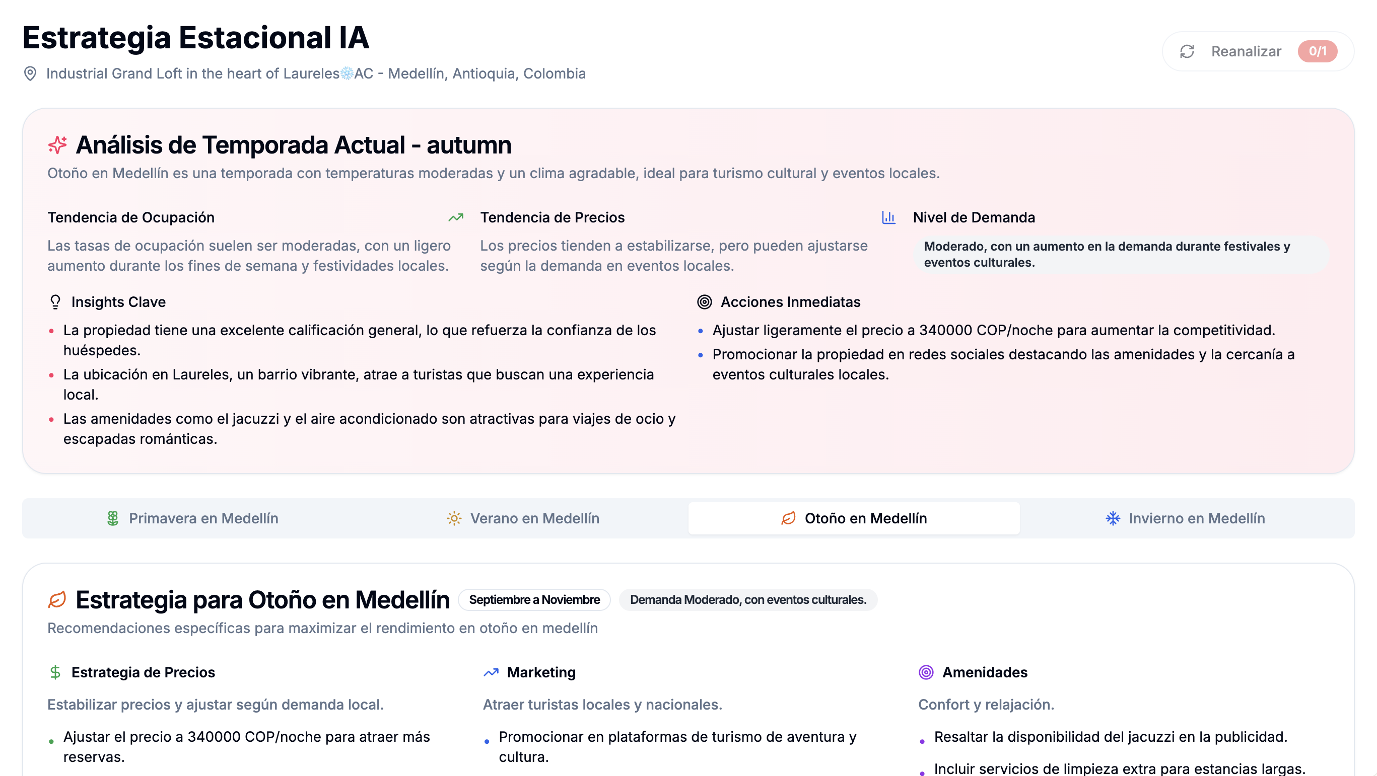 Obtenga información mensual detallada con recomendaciones prácticas sobre cuándo ajustar sus tarifas, qué servicios destacar y cómo comercializar su propiedad para atraer a los huéspedes adecuados durante las temporadas altas y bajas.